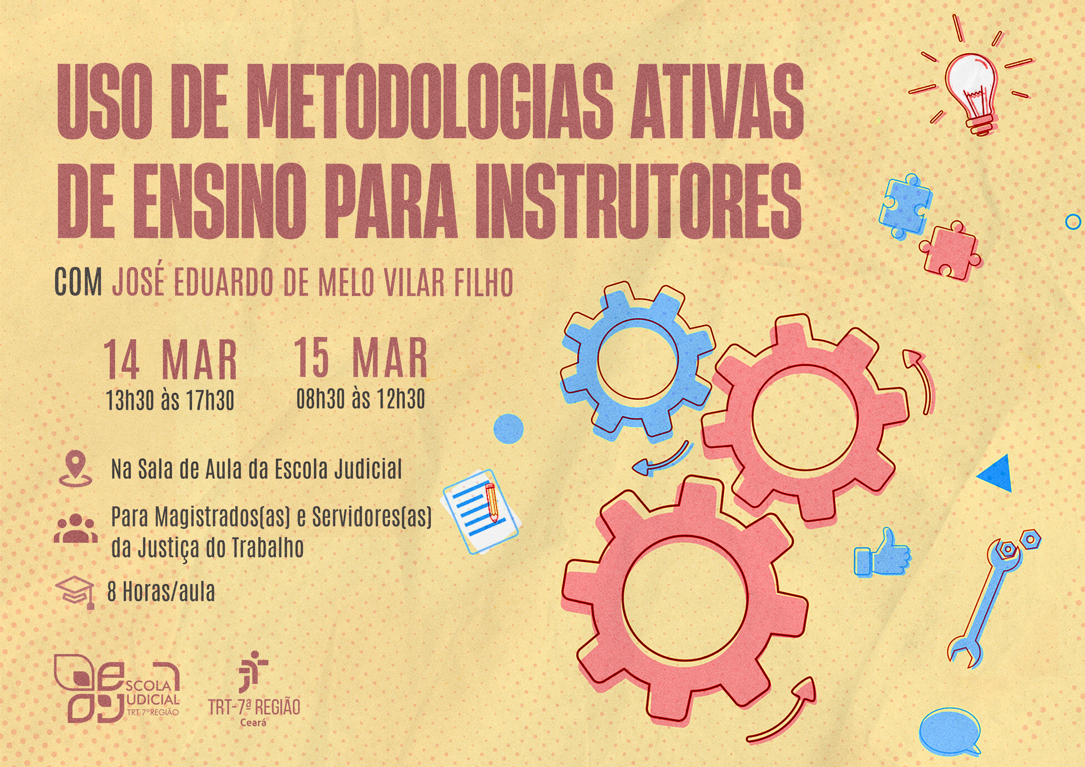 Local: Sala de Aula da EJUD7 (Rua Vicente Leite, 1281, Anexo II, 4º Andar, Aldeota - Fortaleza/CE