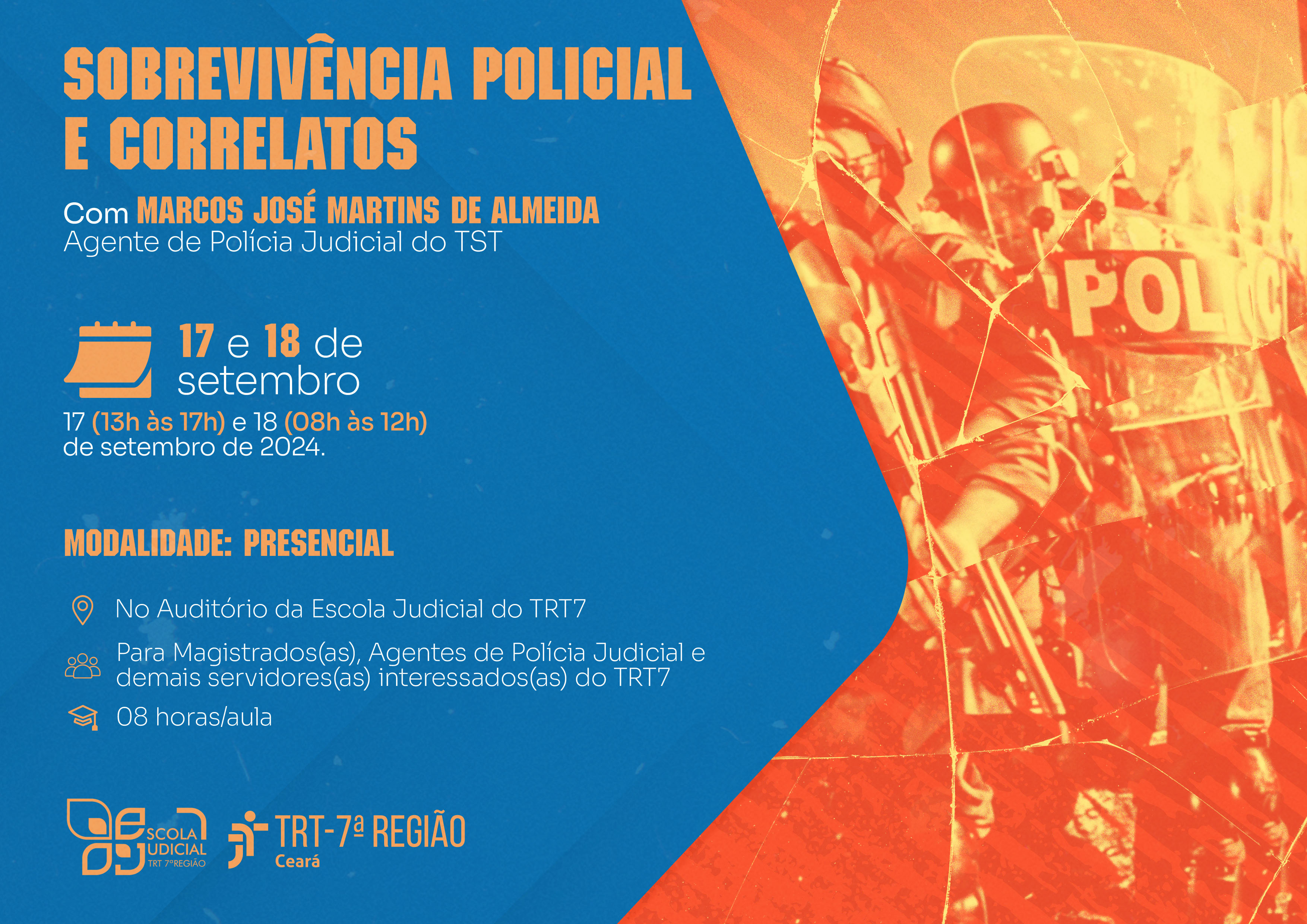 Público-alvo: Magistrados(as), Agentes de Polícia Judicial e demais servidores interessados do TRT7.