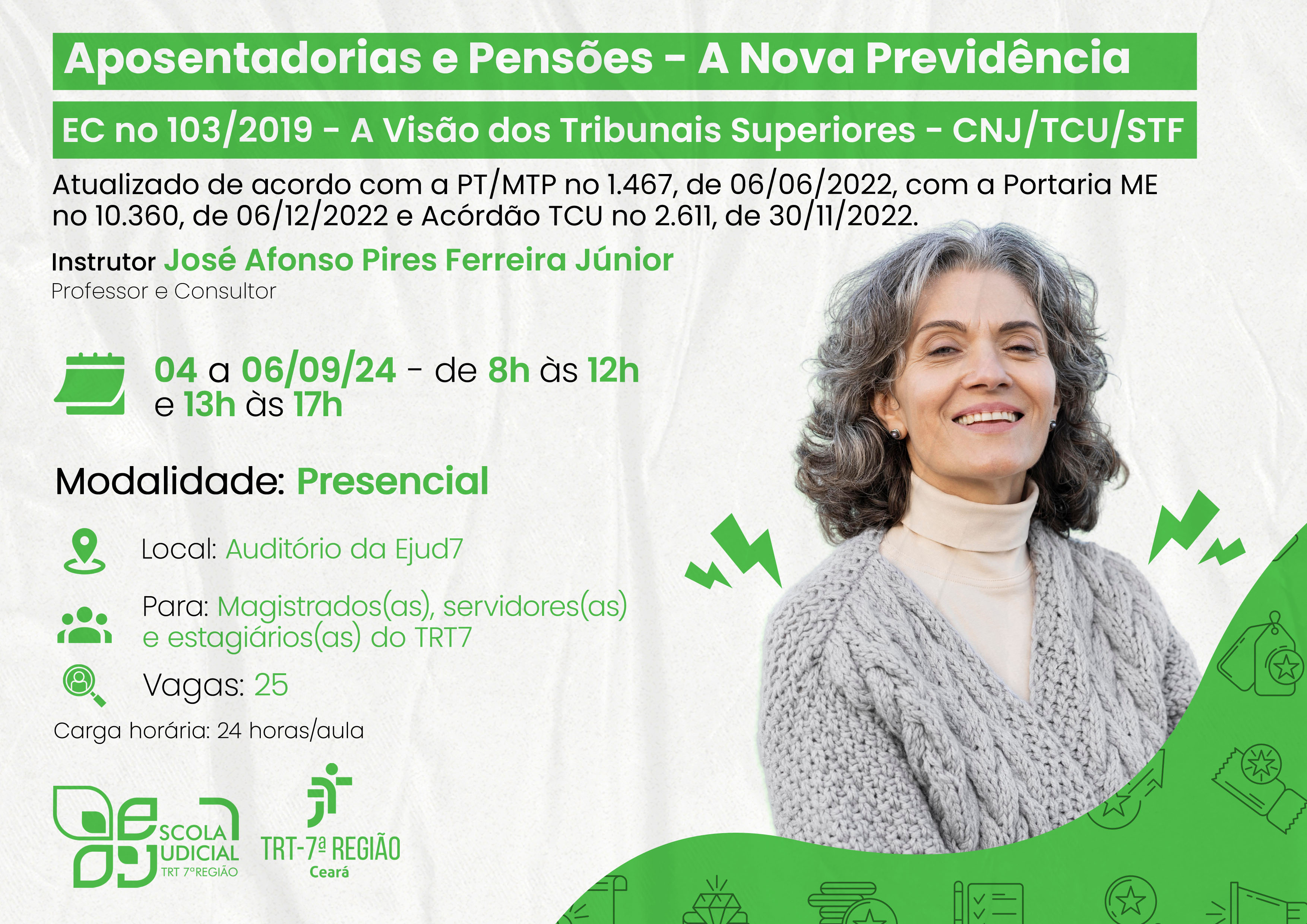 Evento: Curso sobre Aposentadorias e Pensões – A nova Previdência – EC no 103/2019 – A Visão dos Tribunais Superiores – CNJ/TCU/STF – Atualizado de acordo com a PT/MTP no 1.467, de 06/06/2022, com a Portaria ME no 10.360, de 06/12/2022 e Acórdão TCU no 2.611, de 30/11/2022