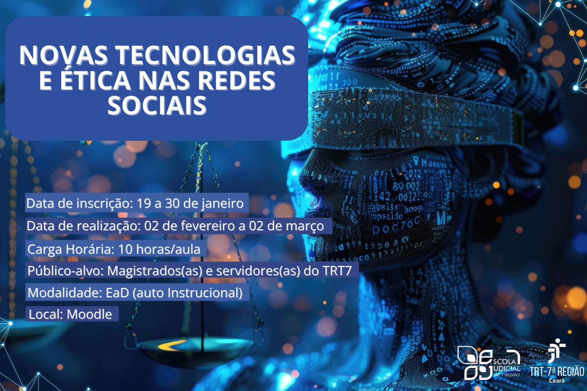 Conteúdo programático: Novas Tecnologias e Sociedade Digital. Ética, Moral e Comportamento no Ambiente Digital. Redes Sociais, Poder Judiciário e Deveres Funcionais. Riscos, Responsabilidades e Desafios no Uso das Redes Sociais. Boas Práticas, Cidadania Digital e Uso Consciente das Tecnologias.