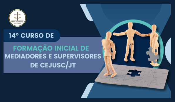A Escola Judicial do Tribunal Regional do Trabalho da 15ª Região oferece o 14º Curso de Formação Inicial de Mediadores e Supervisores de CEJUSC-JT, por meio da modalidade a distância (EaD) e Aulas ao vivo telepresenciais, em consonância com o que determina o Conselho Nacional de Justiça (CNJ), o Conselho Superior da Justiça do Trabalho (CSJT) e a Escola Nacional de Formação e Aperfeiçoamento de Magistrados do Trabalho (ENAMAT), acerca da capacitação de magistrados e servidores.
