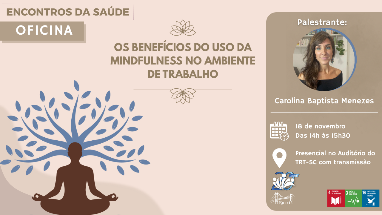A Escola Judicial do Tribunal Regional do Trabalho da 12ª Região (Ejud-12) convida para a oficina "Os benefícios do uso da Mindfulness no ambiente de trabalho".