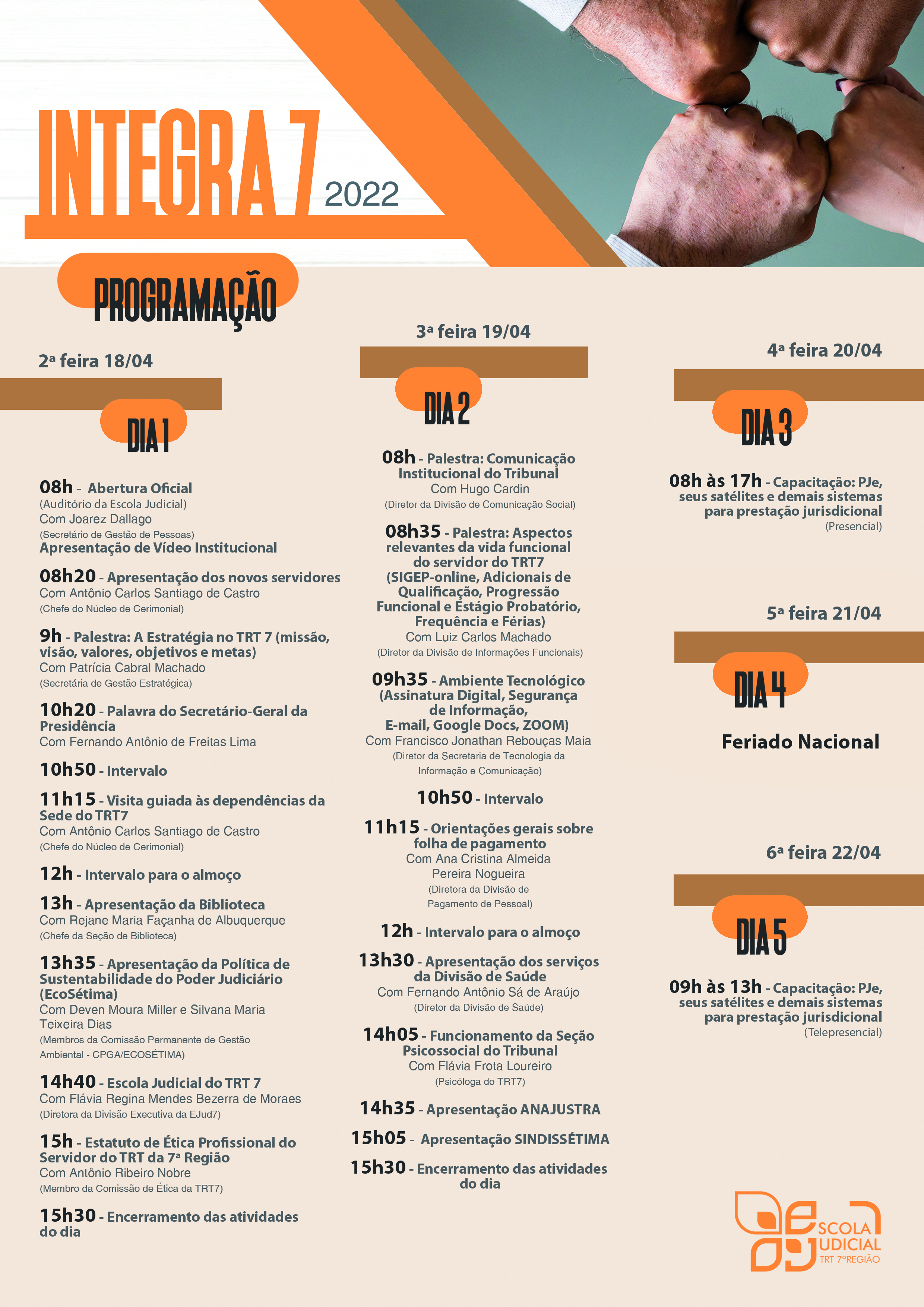 O treinamento faz parte do Programa de Ambientação de Novos Servidores - Integra 7, que será realizado no periodo de 18 a 22 de abril de 2022.