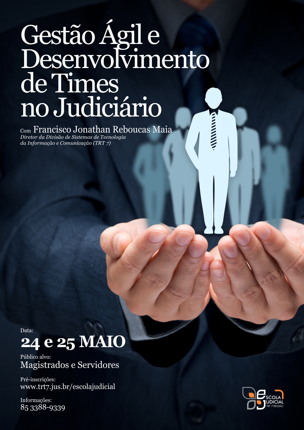 Inscrições abertas para o curso "Gestão Ágil e Desenvolvimento de Times no Judiciário", que será realizado pelo servidor Francisco Jonathan Rebouças Maia, nos dias 24 e 25 de maio de 2018, das 8h às 16h, no Auditório da Escola Judicial.