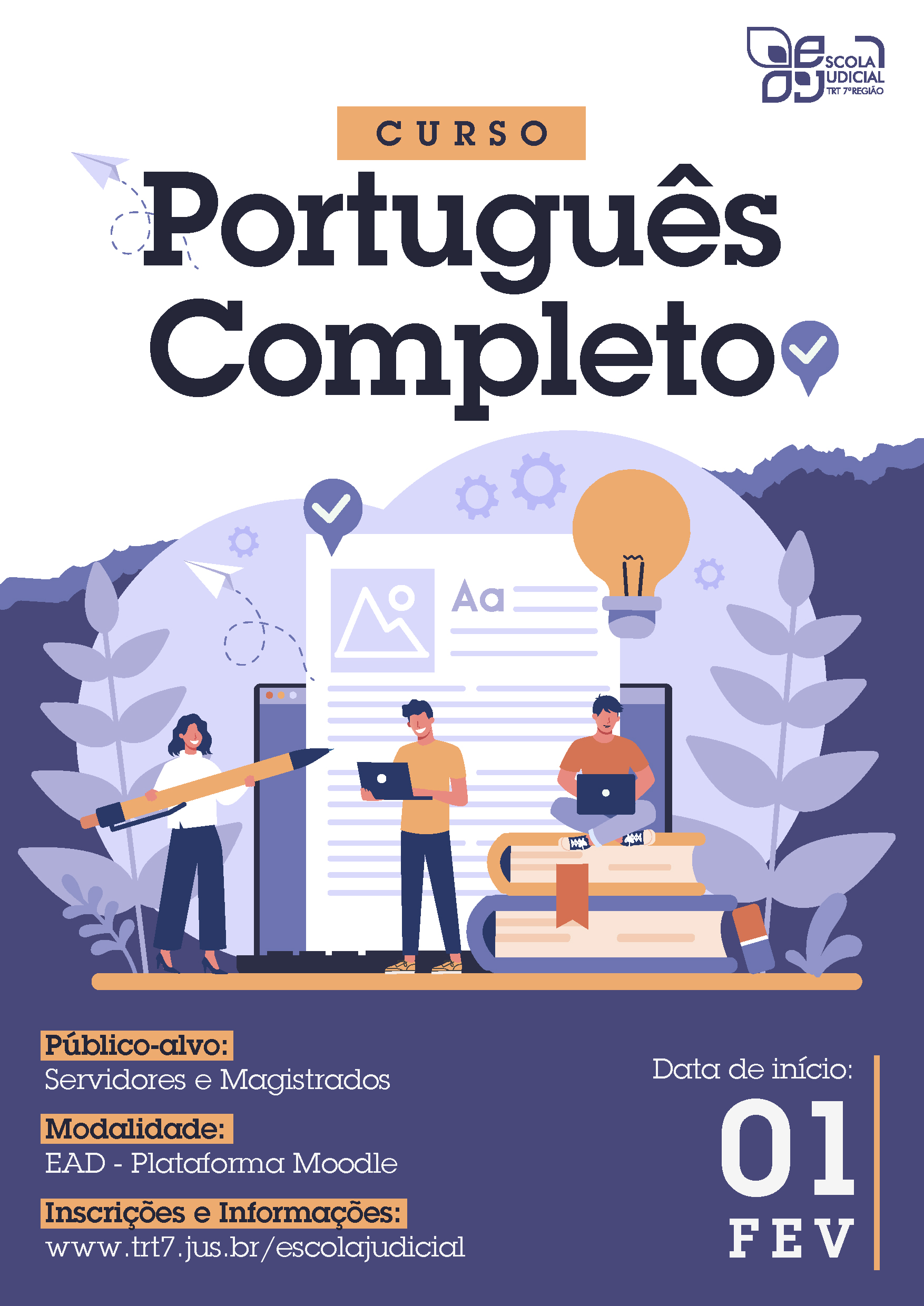 O curso tem como objetivo proporcionar aos magistrados e servidores do TRT da 07ª Região domínio do uso e das normas da Língua Portuguesa em atividades profissionais e pessoais por meio de aulas expositivas e dinâmicas. A metodologia do curso enfatiza a parte prática por meio de explicações das regras, diversidades de exemplos para a compreensão e atividades para fixar o conteúdo.