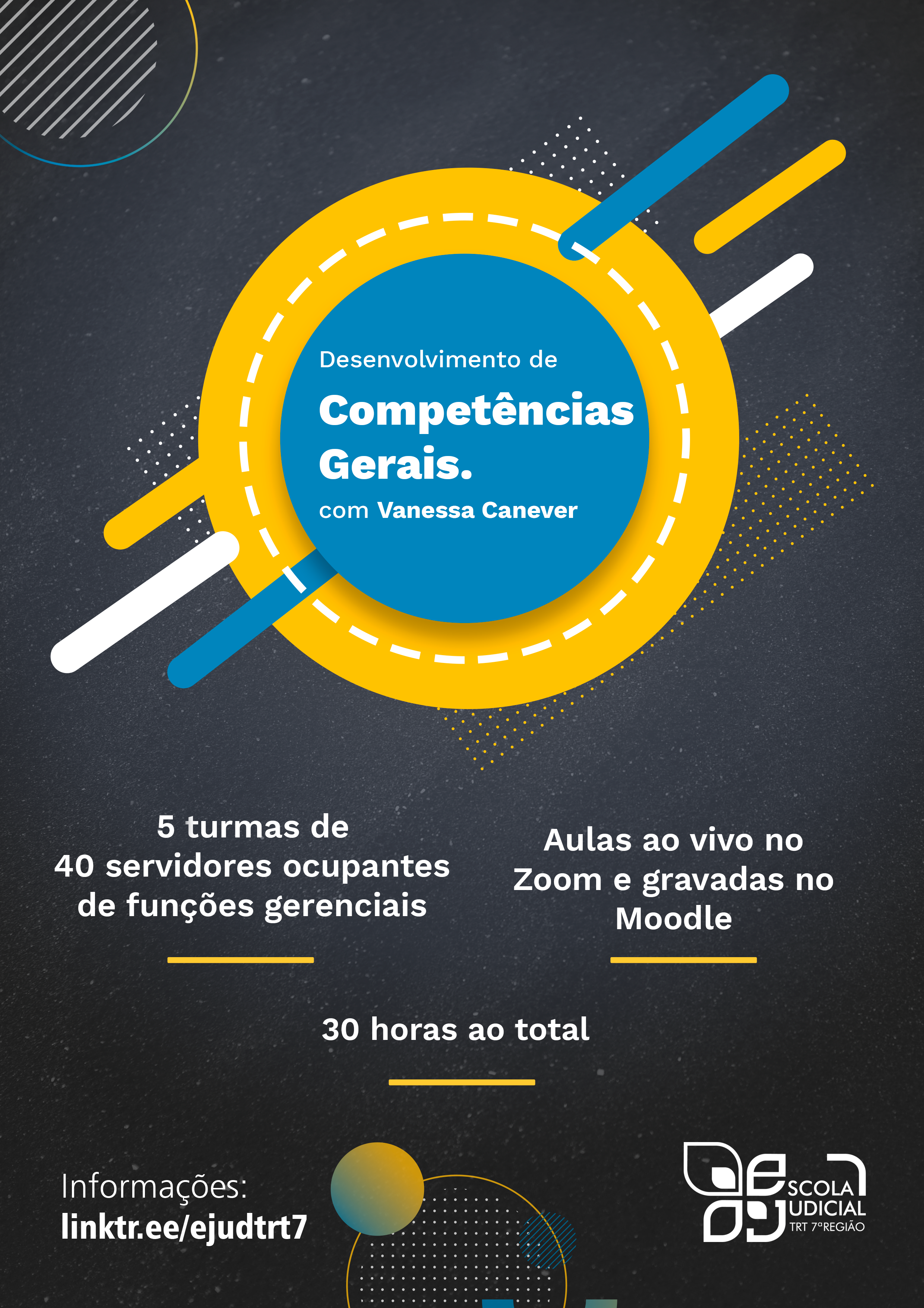 O Tribunal Regional do Trabalho da 7ª Região, por meio da Escola Judicial, promoverá o curso de Desenvolvimento de Competências Gerenciais - 2021, destinado aos servidores ocupantes de funções comissionadas de natureza gerencial.