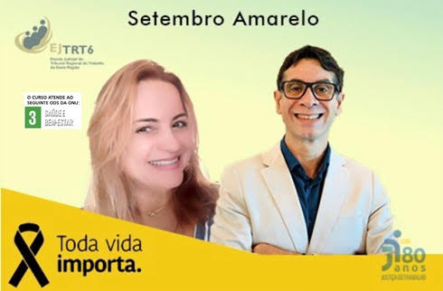 Para debater a problemática do suicídio entre crianças, jovens e adolescentes, o Comitê Gestor Local de Atenção Integral à Saúde de Magistrados e Servidores do TRT6 e o Núcleo de Saúde, em parceria com a Escola Judicial (EJ6) do Tribunal Regional do Trabalho da Sexta Região (TRT6) promovem, na próxima quarta-feira (29) das 15h ás 17h a live Caminhando com os Filhos. A ação se engaja no Setembro Amarelo, campanha de prevenção ao suicídio, será transmitida pelo canal do Youtube.