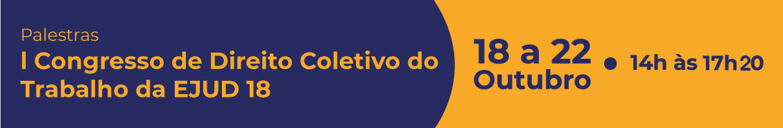 A Ecola Judicial do TRT 18ª Região realizará o I Congresso de Direito Coletivo do Trabalho, dos dias 18 a 22 de outubro das 14h às 17h20 pelo Canal do Youtube do TRT - Goiáis.