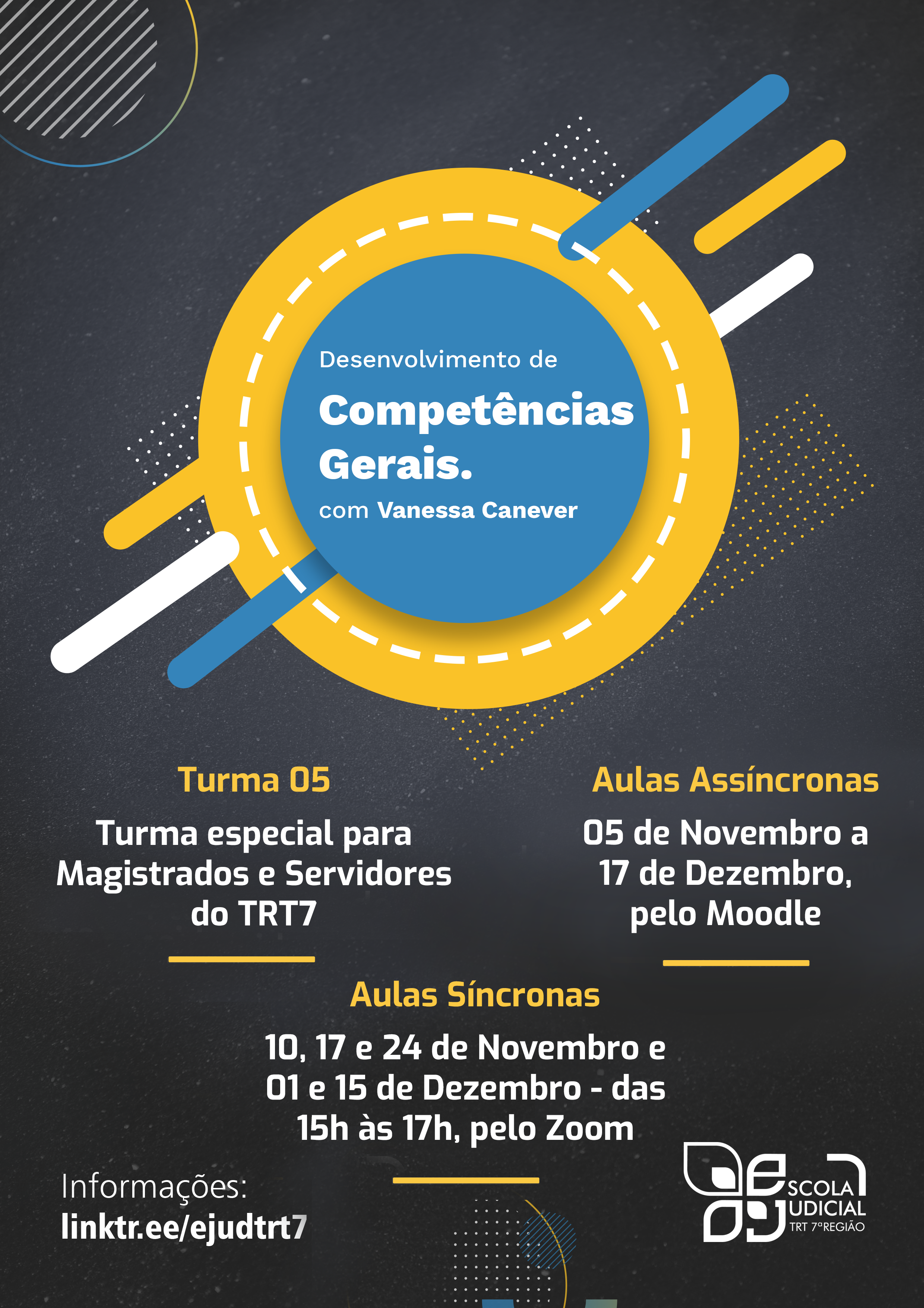 O treinamento será ministrado por Vanessa Canever, Mestre em Educação, com carga horária total de 30 horas/aula, sendo 10 horas de atividades síncronas, pelo Zoom e 20 horas de atividades assíncronas, pela plataforma Moodle.