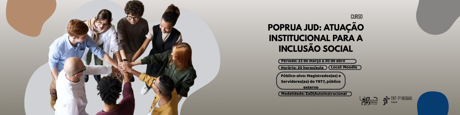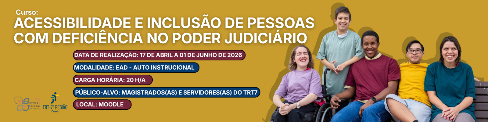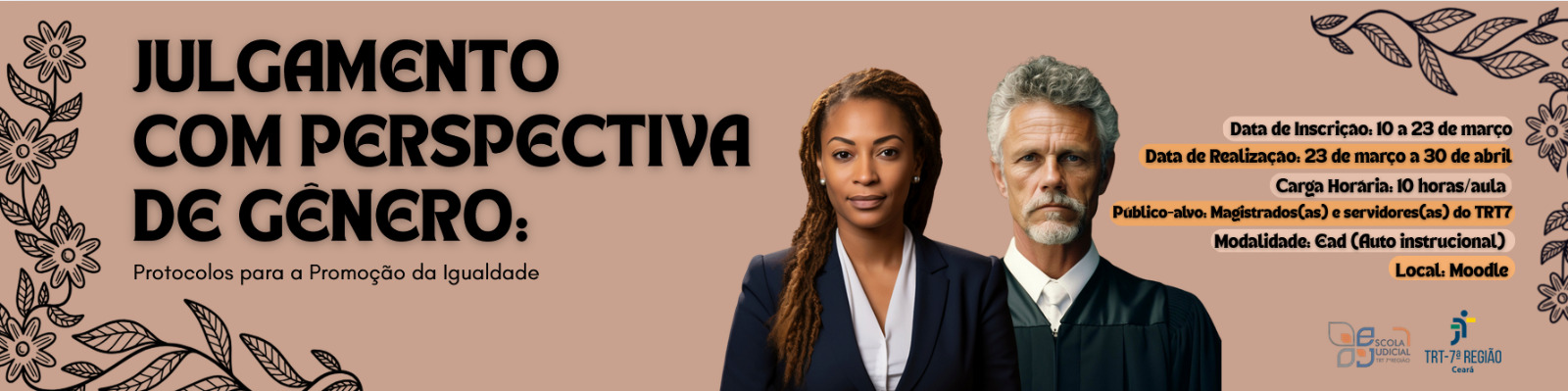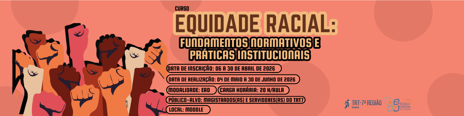 A Escola Judicial do TRT da 7ª Região (EJUD7) promoverá o curso "Direitos humanos, Gênero, Raça e Etnia", no período de 02 de março a 30 de...