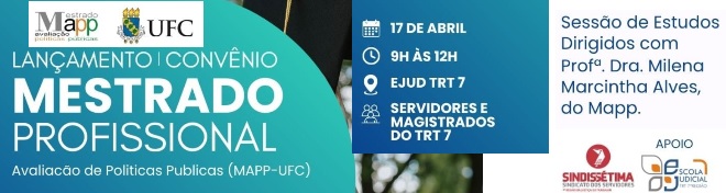 Convite: Lançamento da parceria entre o Mestrado Profissional em Avaliacão de Politicas Publicas ( MAPP-UFC) e o Sindissétima A Escola Judicial do TRT7, o Sindissétima e o Mestrado...