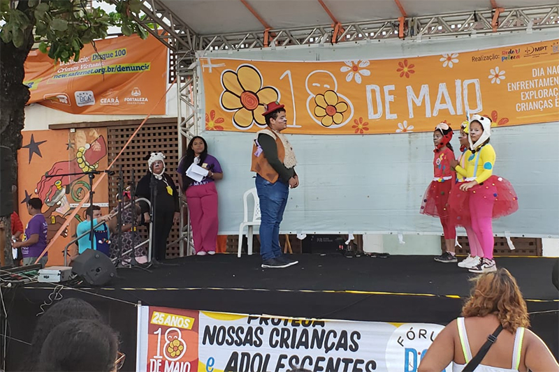 A gestão regional do Programa de Combate ao Trabalho Infantil e de Estímulo à Aprendizagem do Tribunal Regional do Trabalho do Ceará (TRT-CE) participou de programação em alusão ao Dia Nacional de Enfrentamento à Violência Sexual contra Crianças e Adolescentes, ocorrido no domingo (18/5), no Centro Cultural Belchior, na Praia de Iracema. O evento foi promovido pela Prefeitura Municipal de Fortaleza em parceria com o Fórum Permanente das Organizações Não Governamentais de Defesa dos Direitos da Criança e do Adolescente (Fórum DCA Ceará), o Governo do Estado e diversas instituições da sociedade civil.