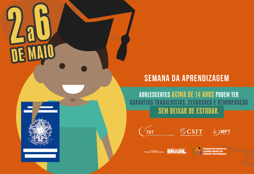 A Semana Nacional de Aprendizagem é uma promoção do Tribunal Superior do Trabalho (TST) e do Conselho Superior da Justiça do Trabalho (CSJT) em parceria com o Ministério Público do Trabalho e o Ministério do Trabalho e Previdência Social.