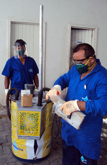 As lâmpadas foram submetidas a um processo de reciclagem, no qual foram separados os resíduos sólidos do gás mercúrio. Antes de ser reutilizado, o vidro das lâmpadas passará por um processo de descontaminação. Quando descartado em locais inadequados, este tipo de lâmpada pode provocar a contaminação do meio ambiente.