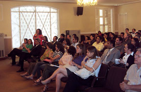 O Diretor Geral do TRT/CE, Francisco Ibiapina, arrancou risos da platéia ao apresentar a estrutura administrativa do tribunal, quando disse que tem cargos de juízes e desembargador e se eles quisessem se candidatar estava ali a oportunidade. Dessa forma, descontraiu os novos servidores.