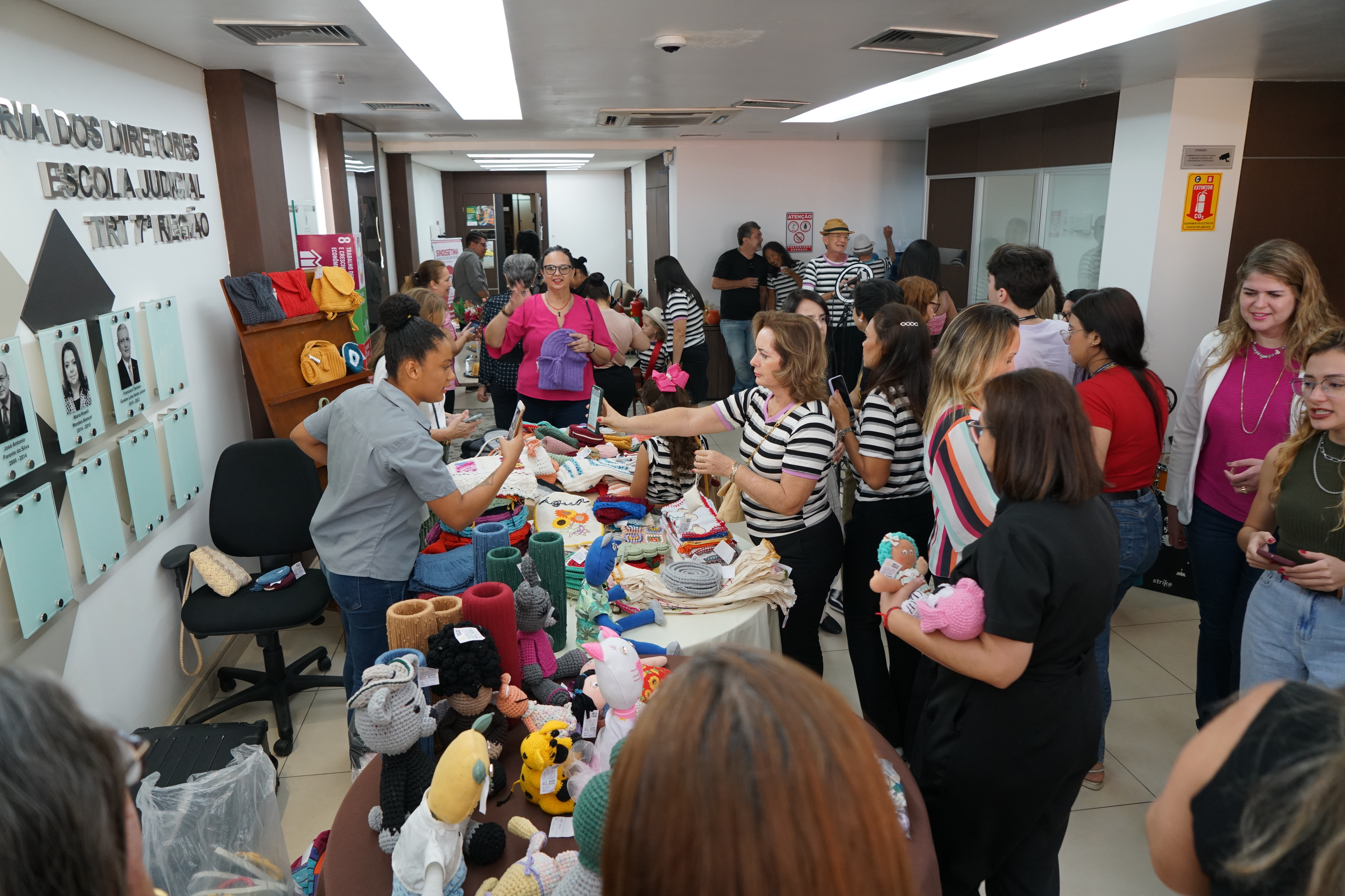 A iniciativa de trazer a exposição à Justiça do Trabalho do Ceará partiu da Ouvidoria do TRT/CE. Na ocasião da abertura, servidoras, terceirizadas e estagiárias comemoravam o Dia das Mães na Justiça do Trabalho do Ceará e desfrutaram das peças expostas. Os produtos confeccionados, como almofadas, tapetes, necessaire, bolsas e artigos de decoração feitos de crochê, macramé, renda tenerife e bordado têm sua renda revertida para o Fundo Rotativo do Sistema Penitenciário do Ceará.