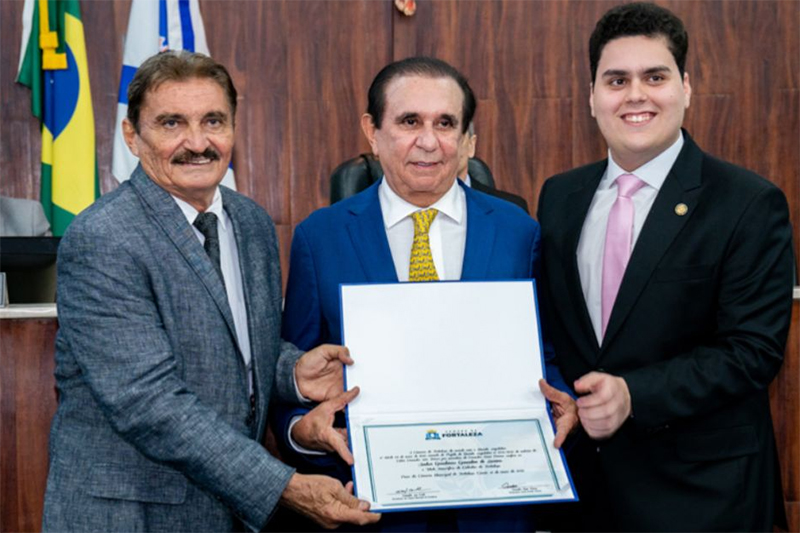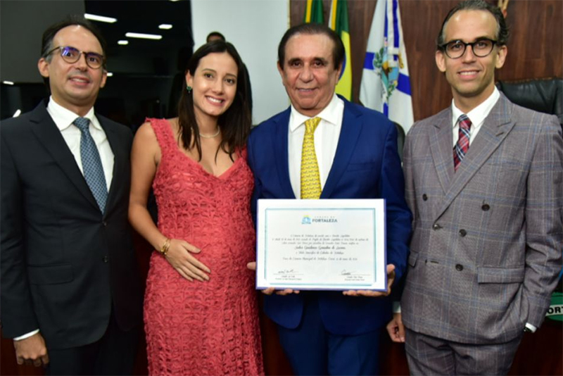 A Câmara Municipal de Fortaleza concedeu, na quinta-feira (15/5), o título de Cidadão Fortalezense ao empresário e ex-vice-prefeito de Fortaleza, Gaudêncio Gonçalves Lucena. A solenidade, realizada no Plenário Fausto Arruda, foi presidida pelo vereador René Pessoa. A propositura da honraria foi do ex-vereador Ziêr Ferrer. Além de familiares e amigos do homenageado, compareceram políticos, empresários e representantes do Judiciário, como os desembargadores do Tribunal Regional do Trabalho do Ceará (TRT-CE) Paulo Régis Machado Botelho de Durval César de Vasconcelos Maia.