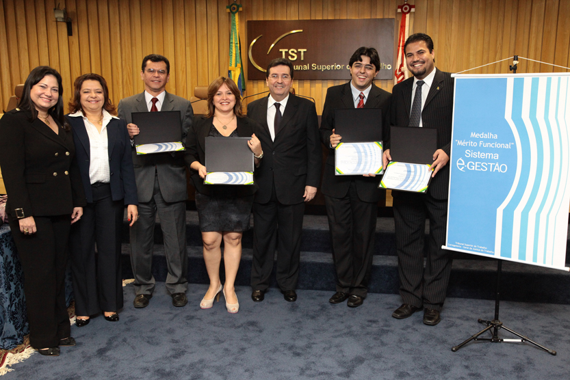O Corregedor-geral da Justiça do Trabalho, ministro Antônio José de Barros Levenhagen, entregou na quinta-feira (24/5) a medalha Mérito Funcional aos presidentes dos 24 Tribunais Regionais do Trabalho, pela conclusão da implantação, na Segunda Instância, do Sistema de Gerenciamento de Informações Administrativas e Judiciárias da Justiça do Trabalho (e-Gestão). A solenidade de premiação foi realizada no Tribunal Superior do Trabalho, quando também houve a entrega do certificado "Mérito Funcional" aos integrantes dos Comitês Regionais e do Comitê Nacional do e-Gestão.