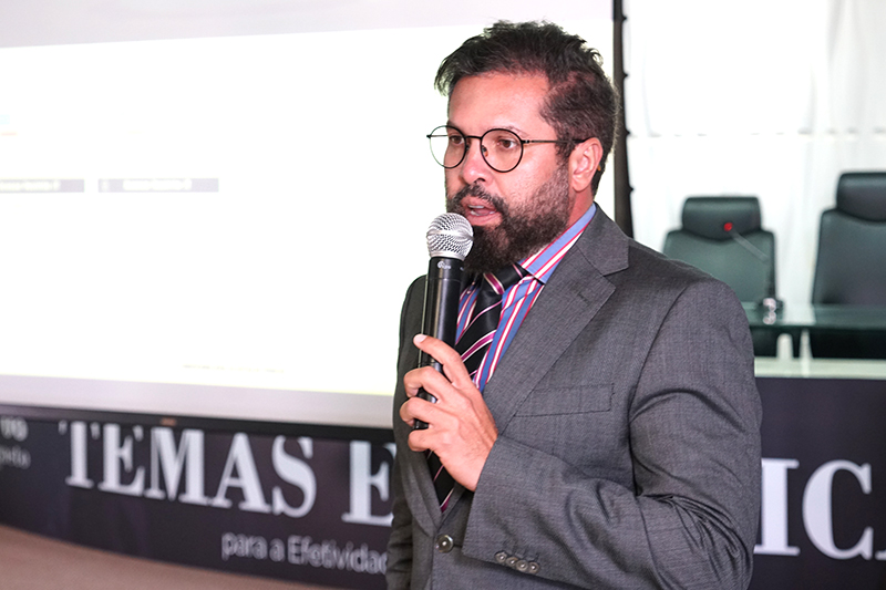 Abertura oficial do evento foi realizada pelo desembargador Antônio Teófilo Filho. Ele é conselheiro da Ejud7 e gestor regional de execução do TRT-CE. “É uma matéria muito relevante e ao mesmo tempo desafiadora”, declarou o magistrado após dar boas vindas e agradecer aos convidados. “Eles irão nos brindar hoje com palestras e apresentações de ferramentas que vão nos ajudar muito na gestão da nossa execução. É um trabalho que a Comissão Nacional está fazendo e divulgando em todo o Brasil”, ressaltou.