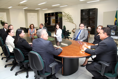 Formado pelo vice-presidente do TRT/CE, desembargador Tarcísio Lima Verde Júnior, pela diretora-geral, Neiara Frota, e pelos servidores Joarez Dallago, Flávia Moraes e Patrícia Machado, o grupo foi recebido na manhã de terça-feira (7/8) pelos desembargadores Jorge Cardoso, presidente do TRT/SE, Graça Melo, ouvidora do Tribunal, e João Aurino.