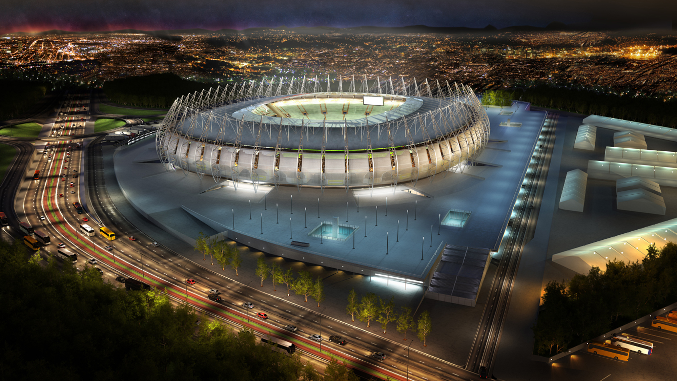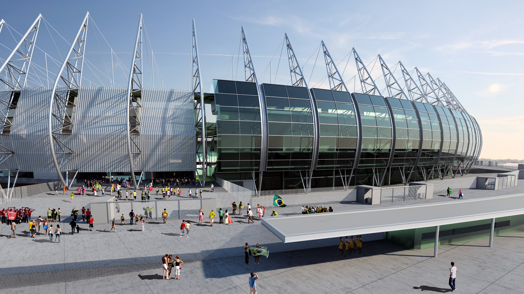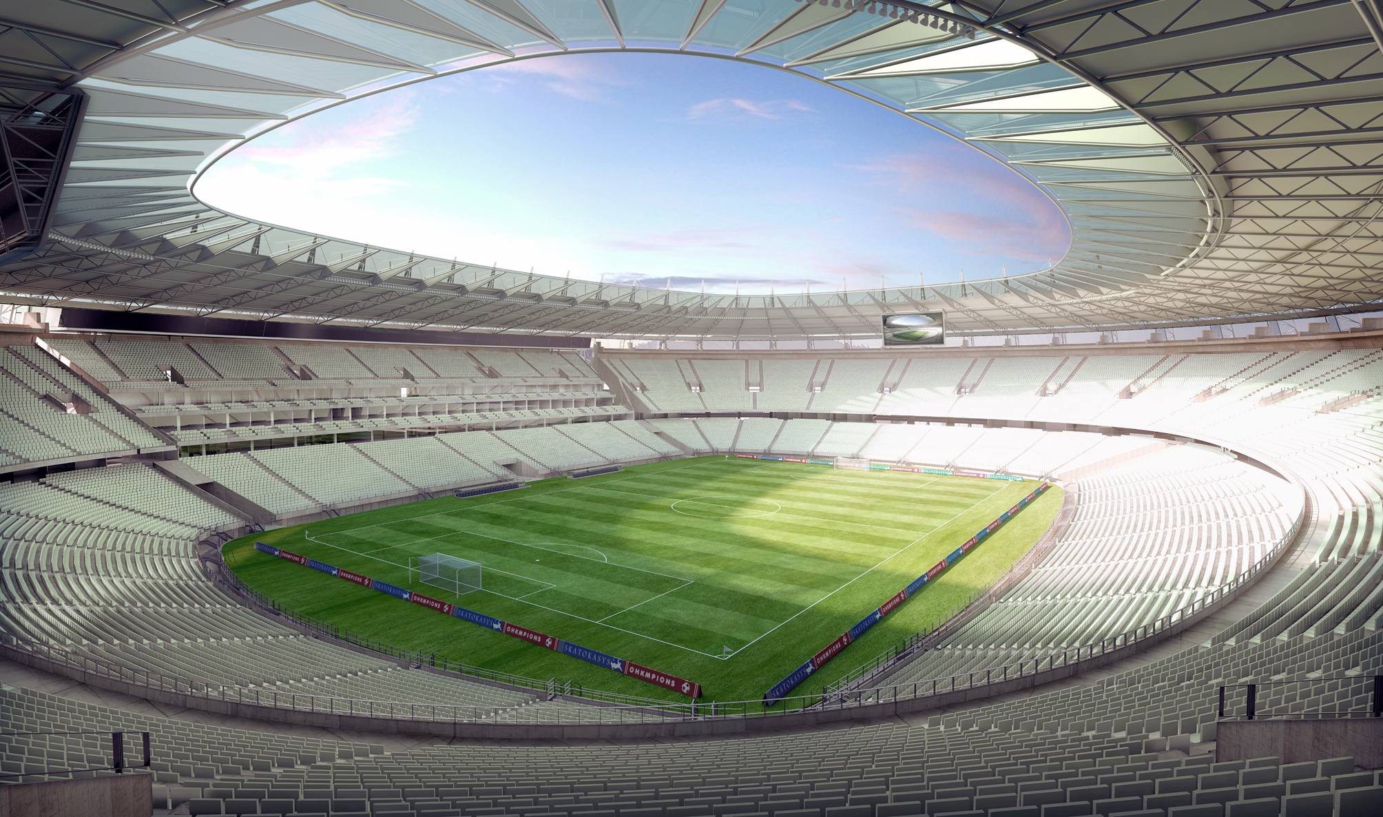 Obras: Sede do ato público do dia 17 de agosto, o Castelão ostenta o título de não ter registrado nenhum acidente grave ou fatal desde o início da obra. A arena cearense é a que possui as obras mais avançadas dentre as doze sedes da Copa do Mundo de 2014. Mais de 80% das obras já foram concluídas. Ela deve ser finalizada em dezembro deste ano e terá capacidade para 67.037 mil espectadores.