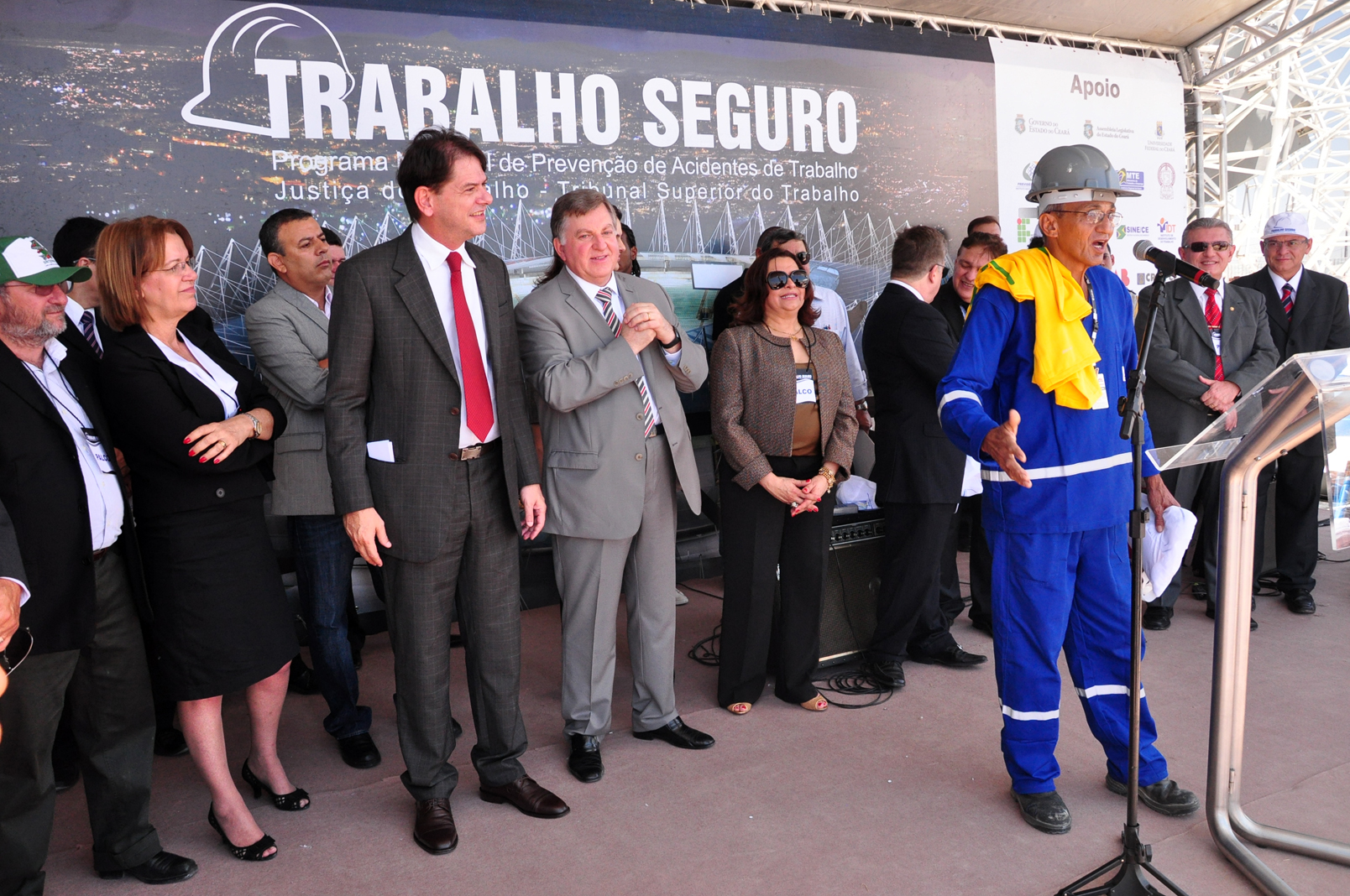 Ao assistir ao Ato Público pelo Trabalho Seguro realizado nesta sexta-feira (17/8) nas obras do Estádio Plácido Castelo (Castelão), o operário Francisco de Assis teve uma manhã inusitada e saudosa. Ficou surpreso por ver pela primeira vez, em mais de 50 anos de idade, autoridades e personalidades reunidas em um canteiro de obras para orientar trabalhadores sobre saúde e segurança no trabalho. A lembrança, amarga, foi a recordação de um colega de trabalho morto enquanto trabalhava nas obras do açude Castanhão, no município de Jaguaribara.