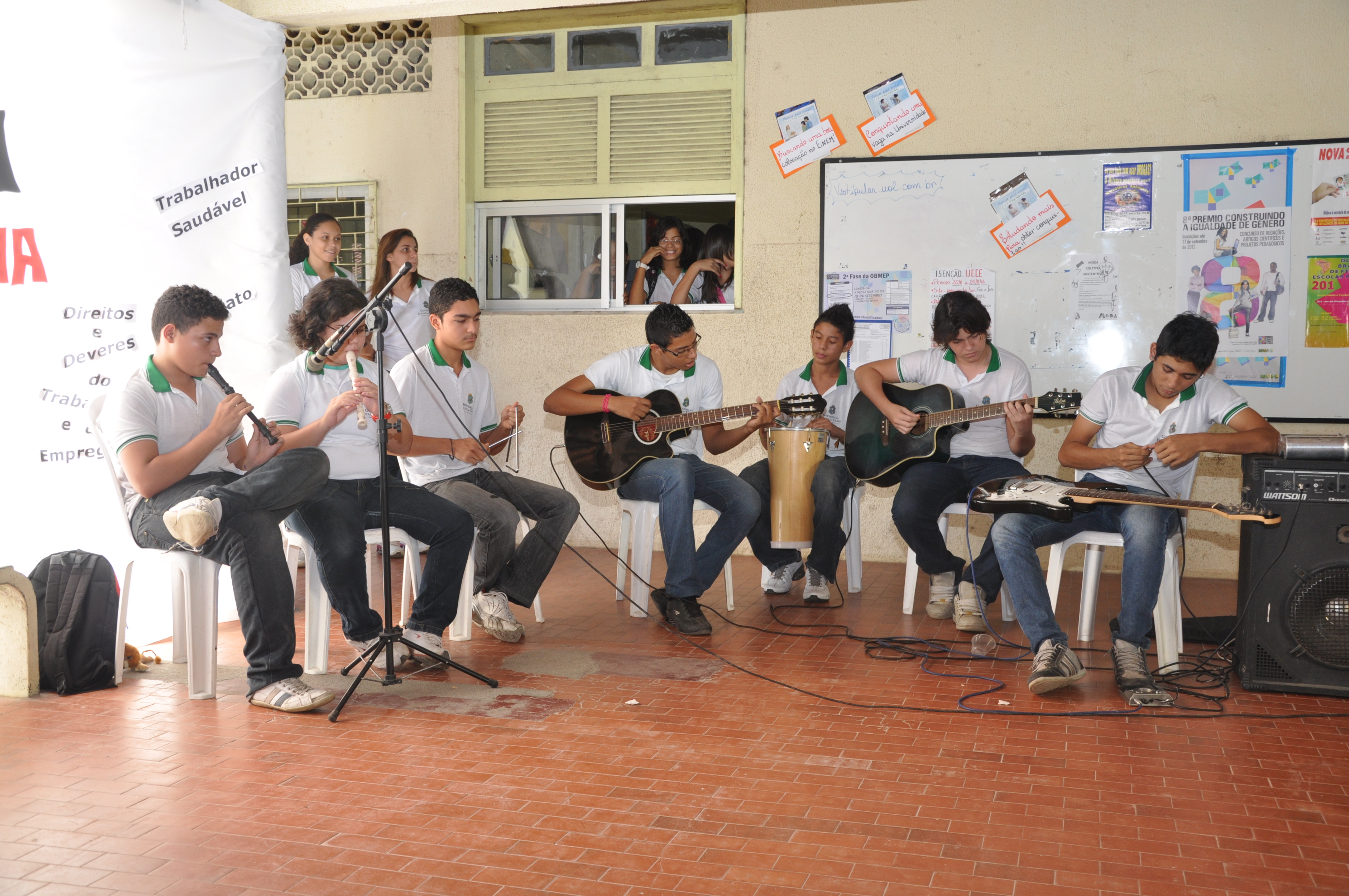 Antes da participação das magistradas no encontro, os alunos fizeram apresentações musicais e de teatro. A banda Onélio's executou peças do cancioneiro popular e um grupo teatral encenou esquetes sobre direitos trabalhistas, como licença-maternidade, trabalho infantil e jornada de trabalho da empregada doméstica.