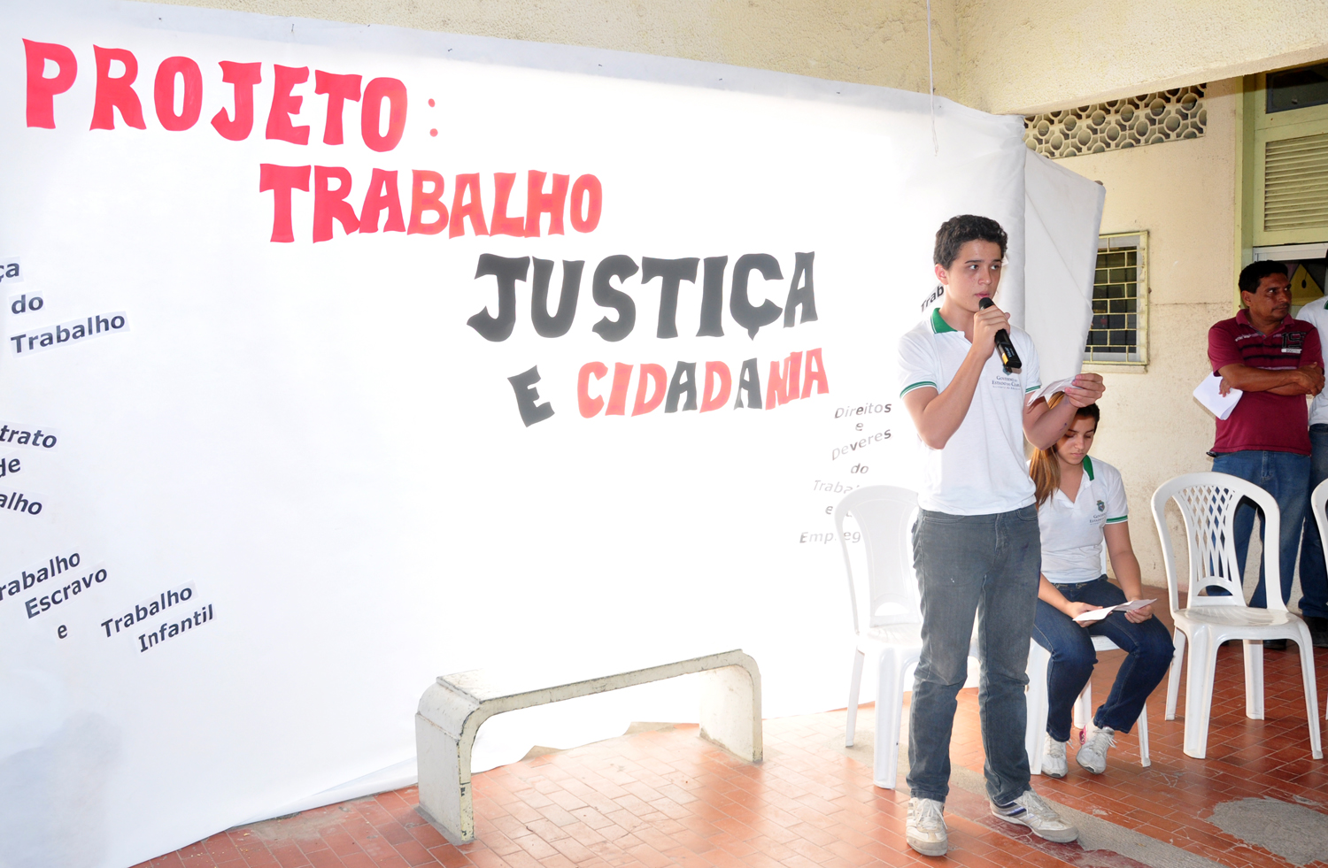 Projeto: A visita às escolas é a terceira etapa do projeto iniciado em março deste ano com a capacitação de 150 professores, coordenadores e dirigentes de escolas. No mês de maio, estudantes de Direito visitaram as salas de aulas das seis escolas inscritas. O TJC terá continuidade com a ida dos estudantes às varas do trabalho. A iniciativa se encerrará no dia 23 de novembro, com apresentação de trabalhos elaborados pelos alunos sobre o conteúdo aprendido.