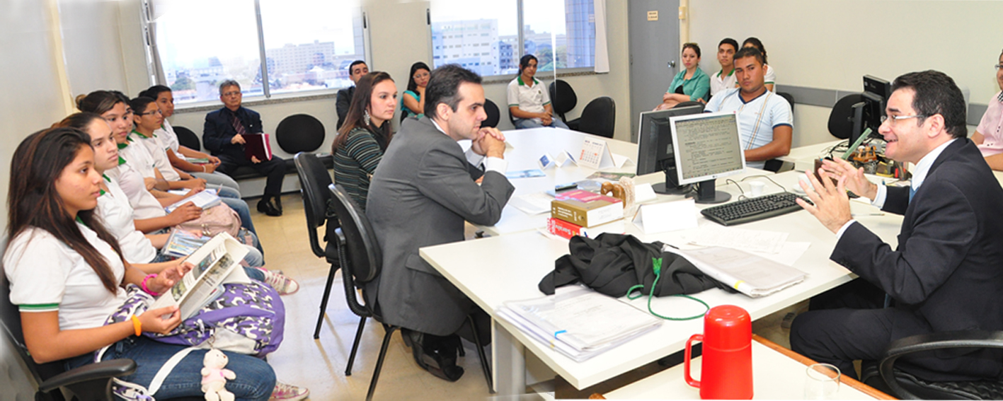 Um dos grupos de alunos visitou a 8ª Vara do Trabalho de Fortaleza e pôde acompanhar o desfecho de um acordo feito entre condomínio e um porteiro. O empregador afirmava que o funcionário teria abandonado o emprego. “Quando há acordo, o juiz não precisa decidir quem está certo ou quem está errado”, explicou aos alunos o juiz do trabalho Ronaldo Solano.