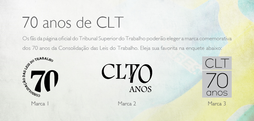 A Justiça do Trabalho comemora em 2013 os 70 anos da promulgação da Consolidação das Leis do Trabalho (CLT). Para celebrar a data, o Tribunal Superior do Trabalho (TST), em parceria com os tribunais regionais do trabalho, preparam uma série de comemorações. E o primeiro ato para o início da celebração é a escolha da logomarca que vai simbolizar as comemorações.