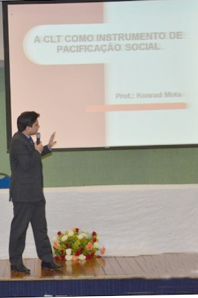 Seminário: O seminário foi aberto pelo juiz do trabalho Lucivaldo Feitosa, que falou sobre a importância e sobre a história da CLT para trabalhadores e empregadores. O primeiro painel da noite contou com a participação do auditor fiscal do trabalho Gilberto Frota e do procurador do trabalho Antonio de Oliveira Lima. O segundo painel teve a participação dos juízes do trabalho Konrad Mota e Jaime Araújo.