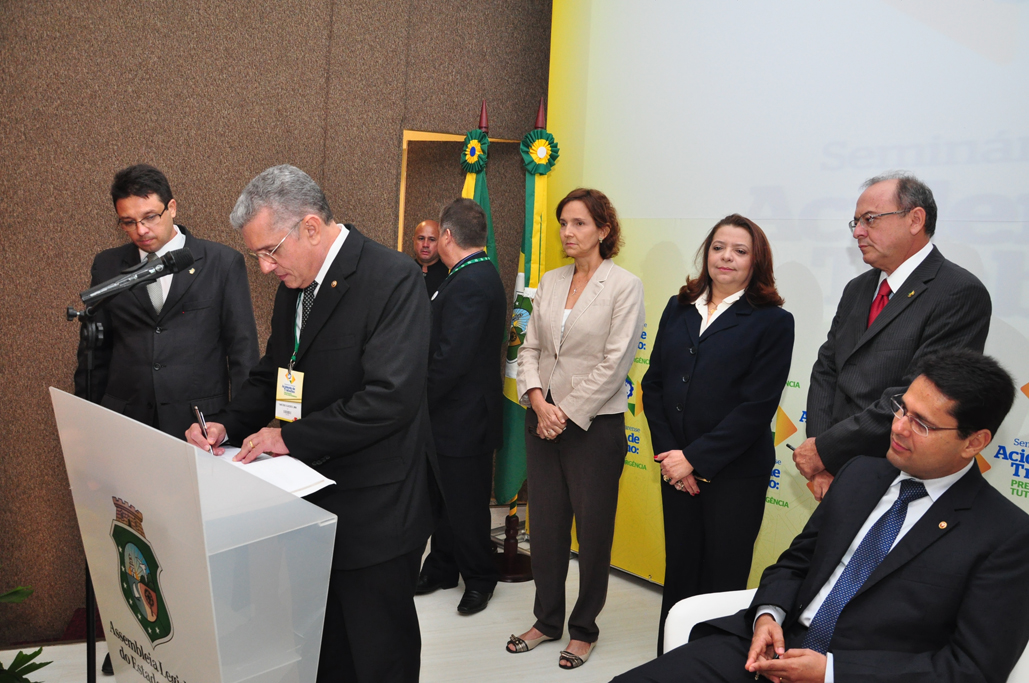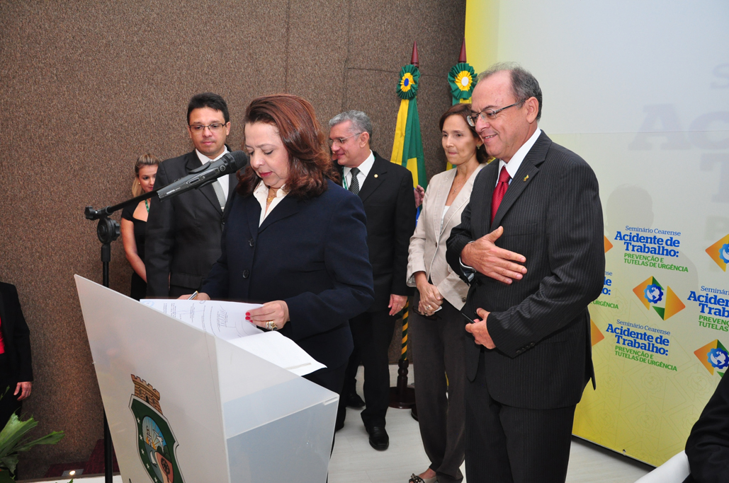 O convênio foi assinado pela presidente do TRT/CE, desembargadora Roseli Alencar, gestores do Programa Trabalho Seguro e a secretária de educação do Ceará, Izolda Cela de Arruda Coelho, durante a abertura do Primeiro Seminário Cearense de Prevenção de Acidente de Trabalho, na quinta-feira (8/8).