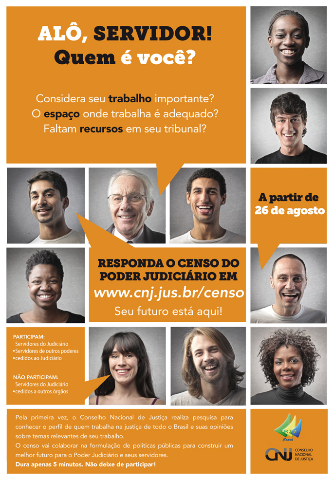 Começa no dia 26 de agosto o prazo para que servidores de todo o Judiciário respondam ao Censo Nacional do Poder Judiciário, que pretende traçar um perfil dos magistrados e servidores da Justiça brasileira. Inicialmente, o questionário estará disponível apenas para os servidores. Em um segundo momento, o levantamento será feito entre os magistrados.