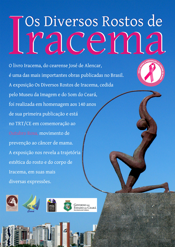 Até o dia 8 de novembro, servidores, magistrados e população em geral poderão apreciar a exposição Os Diversos Rostos de Iracema, no pátio da sede do Tribunal Regional do Trabalho do Ceará. A mostra, organizada pelo Memorial do TRT/CE, faz parte das atividades em apoio ao Outubro Rosa, movimento de prevenção ao câncer de mama.