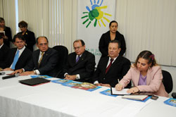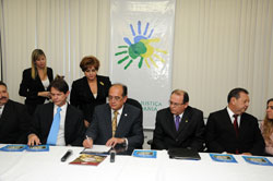 Fizeram parte da mesa que presidiu a solenidade de inauguração da Casa de Justiça e Cidadania do Ceará, o presidente do Conselho Nacional de Justiça e do Supremo Tribunal Federal, ministro Gilmar Mendes, o governador do Estado do Ceará, Cid Gomes, o presidente do Tribunal Regional do Trabalho do Ceará, desembargador Antonio Parente, a prefeita de Fortaleza, Luizianne Lins, o presidente do Tribunal de Justiça do Estado do Ceará, desembargador Ernani Barreira, o presidente do Tribunal Regional Federal da 5ª Região, desembargador Luis Alberto Gurgel, o presidente do Tribunal Regional Eleitoral do Ceará, desembargador Luiz Gerardo de Pontes Brígido, o presidente da Assembléia Legislativa, deputado Domingos Filho, o presidente da Câmara Municipal de Fortaleza, vereador Salmito Filho, o deputado Chico Lopes, a procuradora geral de Justiça do Estado do Ceará, Socorro França, o presidente do SINE/IDT, Francisco de Assis Diniz.