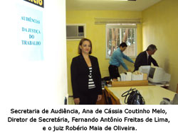 Com ele, trabalhando na elaboração e organização da sala de audiências, o diretor de Secretaria, Fernando Antônio Freitas de Lima, e a secretária de audiência, Ana de Cássia Coutinho Melo. Em 15 minutos a sala de audiência estava com todos os equipamentos de informática prontos e entrava o primeiro jurisdicionado. Em apenas dez minutos o acordo estava fechado.