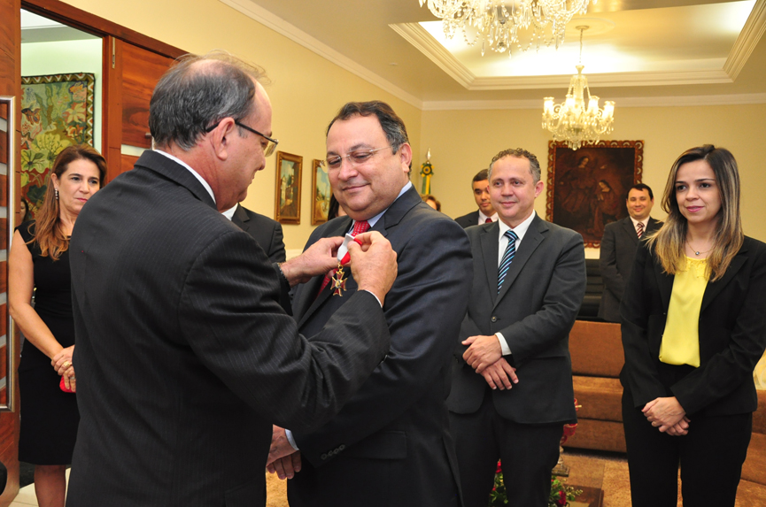 O jornalista Moacir Maia foi agraciado com a medalha da Ordem Alencarina do Mérito Judiciário no Grau Oficial. A comenda foi entregue pelo presidente do Tribunal Regional do Trabalho do Ceará, desembargador Tarcísio Lima Verde Júnior, nesta sexta-feira (19/12), no gabinete da Presidência do TRT/CE.