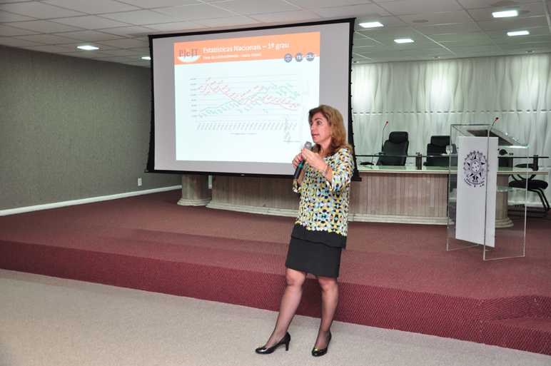 “Para se ter uma ideia da grandiosidade do sistema, em três anos de implantação temos mais de três milhões de processos na base de dados do PJe”, informou a magistrada. Todos os 24 Tribunais Regionais do Trabalho já utilizam o PJe/JT e 15 deles estão com o sistema 100% implantado. São 1.229 varas do trabalho funcionando de forma eletrônica, o correspondente a 78% das 1.538 unidades existentes no país. A meta, segundo a coordenadora, é implantar o sistema em 98% das varas até o final do ano.
