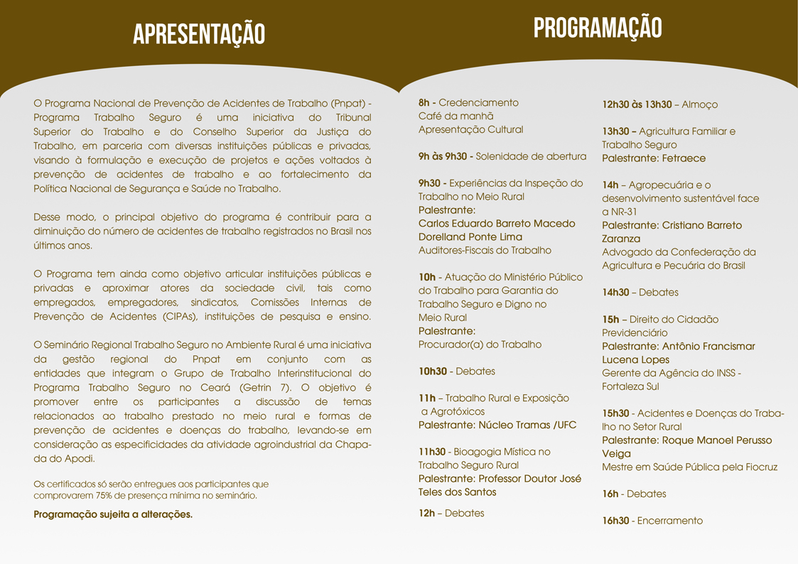 De acordo com um dos gestores regionais do Programa Trabalho Seguro, juiz do trabalho Carlos Alberto Rebonatto, a utilização irregular de agrotóxicos na região foi uma das motivações para a escolha de Limoeiro do Norte como sede do Seminário. “Temos notícias do uso abusivo de agrotóxicos tanto pelas empresas como por pequenos produtores. Já existem estudos científicos confirmando essa informação”, declarou.
