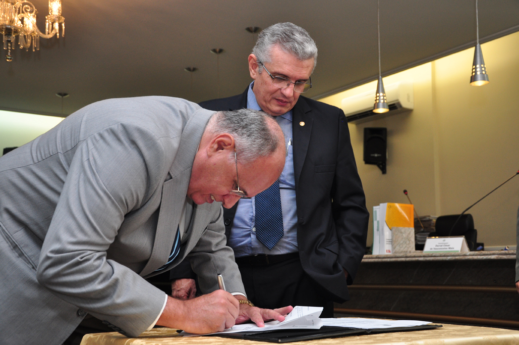 O Tribunal Regional do Trabalho do Ceará e a Caixa Econômica Federal (CEF) celebraram Termo de Cooperação com o objetivo reduzir a quantidade de processos em fase de execução, em que a Caixa é parte. O documento foi assinado pelo presidente do TRT/CE, desembargador Tarcísio Lima Verde Júnior, e pelo gerente do Setor Jurídico da CEF, Juvenal Arruda Furtado, em 25 de setembro, último dia da Semana da Execução Trabalhista.