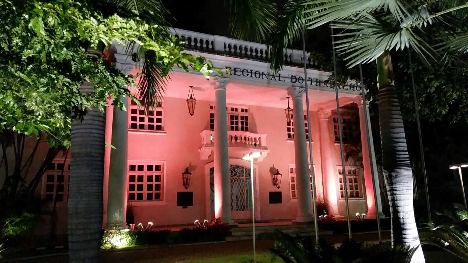 Sede do TRT/CE fica iluminada na cor rosa para incentivar combate ao câncer de mama