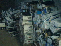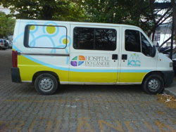 Para fazer a entrega, foram necessárias duas kombis e uma Van que ficaram totalmente abarrotadas de toners e cilindros que, agora, vão ser transformadas em recursos para ajudar o Instituto do Câncer na sua atividade.
