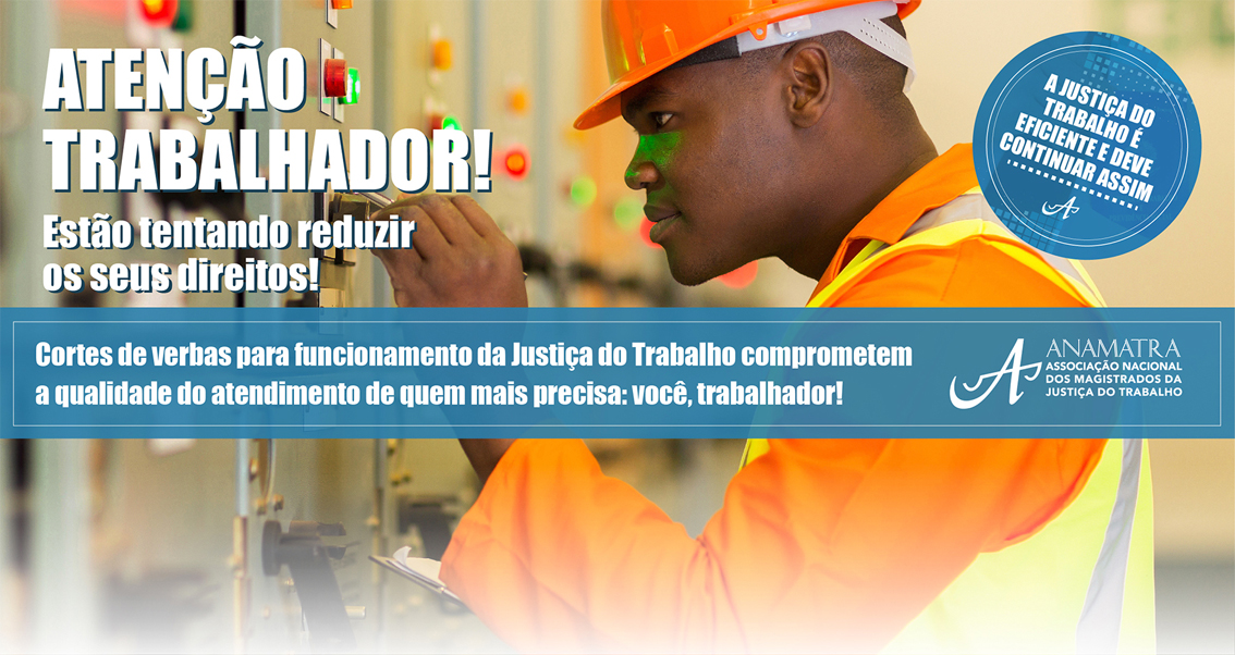 Em manifestação contra os cortes orçamentários impostos à Justiça do Trabalho por meio da Lei Orçamentária Anual de 2016, a Associação Nacional dos Magistrados da Justiça do Trabalho (Anamatra) lança Campanha Nacional “A Justiça do Trabalho é eficiente e deve continuar assim”, a partir campanha regional encabeçada pela Amatra 8 (Belém/PA). Em diversas peças, a associação alerta para as ameaças sofridas pelo Judiciário Trabalhista desde os cortes orçamentários de 90% no investimento e de cerca de 30% no custeio dos tribunais, comprometendo o funcionamento dos órgãos de primeiro e segundo graus.