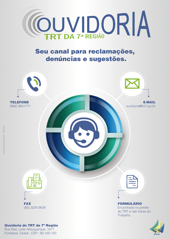 Campanha - a Ouvidoria do TRT/CE lançou no final de 2015 sua nova campanha de divulgação, com novo projeto gráfico para cartazes, panfletos e banners.