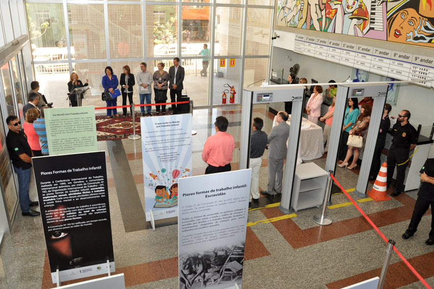 A Justiça do Trabalho do Ceará inaugurou, nesta segunda-feira (10/10), a exposição itinerante Um Mundo Sem Trabalho Infantil. A mostra, promovida pelo Programa Nacional de Combate ao Trabalho Infantil e de Estímulo à Aprendizagem, foi aberta pela presidente do Tribunal Regional do Trabalho do Ceará, desembargadora Maria José Girão, no Fórum Autran Nunes. Com painéis que retratam as piores formas de trabalho infantil, a exposição pretende chamar a atenção da sociedade para a exploração da mão de obra de crianças e de adolescentes.