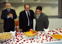 Durante todo o dia, o presidente do TRT/CE recebeu demonstrações de carinho e afeto, ouvindo, em várias edições, o clássico “Parabéns prá você”. Um exemplo foi o que ocorreu no Fórum Autran Nunes, onde teve direito a bolo e velas, repartindo a alegria das manifestações com o chefe de cerimonial do Tribunal, Antonio Carlos Santiago, também aniversariante do dia.