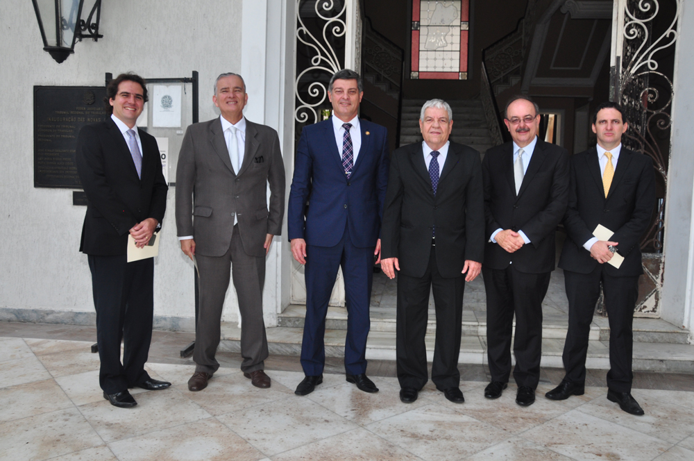 O vice-presidente do Tribunal Regional do Trabalho do Ceará, desembargador Jerfferson Quesado Júnior, recebeu, na sexta-feira (10/3), a visita dos novos administradores do Tribunal Regional Federal da 5ª Região (TRF5). O presidente eleito, desembargador Manoel Erhardt, acompanhado dos vice e corregedor, respectivamente, Cid Marconi Gurgel de Souza e Paulo Machado Cordeiro, entregou o convite para a cerimônia de posse, que acontece no dia três de abril, às 17h, na sede do TRF5, em Recife/PE.