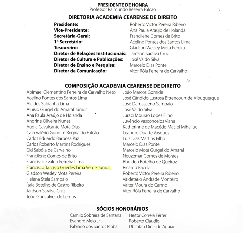 Serão empossados e diplomados 36 acadêmicos, 16 sócios-correspondentes e seis sócios-honorários. O desembargador do Tribunal Regional do Trabalho do Ceará Tarcísio Lima Verde Júnior será um dos acadêmicos da Aced, que é a quarta academia do gênero a funcionar no Brasil.