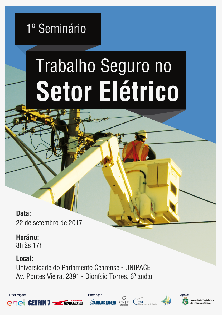 O Tribunal Regional do Trabalho do Ceará em parceria com a Enel e o Sindicato dos Eletricitários do Ceará (Sindeletro) realizam, no dia 22 de setembro, na Universidade do Parlamento Cearense, o 1º Seminário Trabalho Seguro no Setor Elétrico. O evento, destinado a profissionais da área e ao público em geral, tem o objetivo de debater as condições de segurança e saúde dos trabalhadores e mostrar boas práticas sobre o tema. Confira a programação.