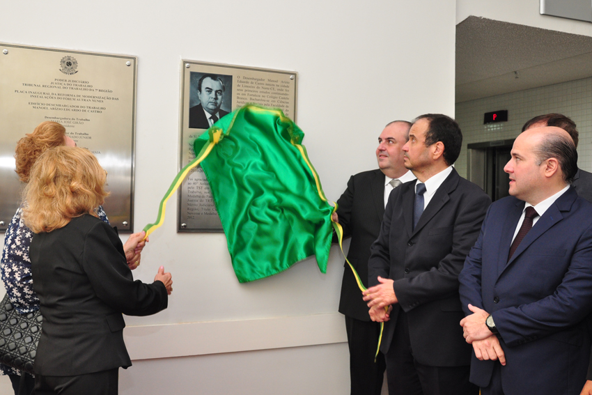 Homenagem - Esposa e filhos do desembargador Manoel Arízio de Casto compareceram à reinauguração. O magistrado – que dá nome ao edifício - trabalhou como advogado e foi procurador judicial da Superintendência Nacional do Abastecimento (Sunab). Em 1976, foi nomeado desembargador federal do trabalho. Foi presidente do TRT/CE por três vezes, nos biênios 1982/84, 1990/92 e 2000/02. Também foi vice-presidente da instituição em outras duas gestões: 1980/81 e 2010/12. Ele faleceu no dia 25 de junho de 2012, aos 69 anos.